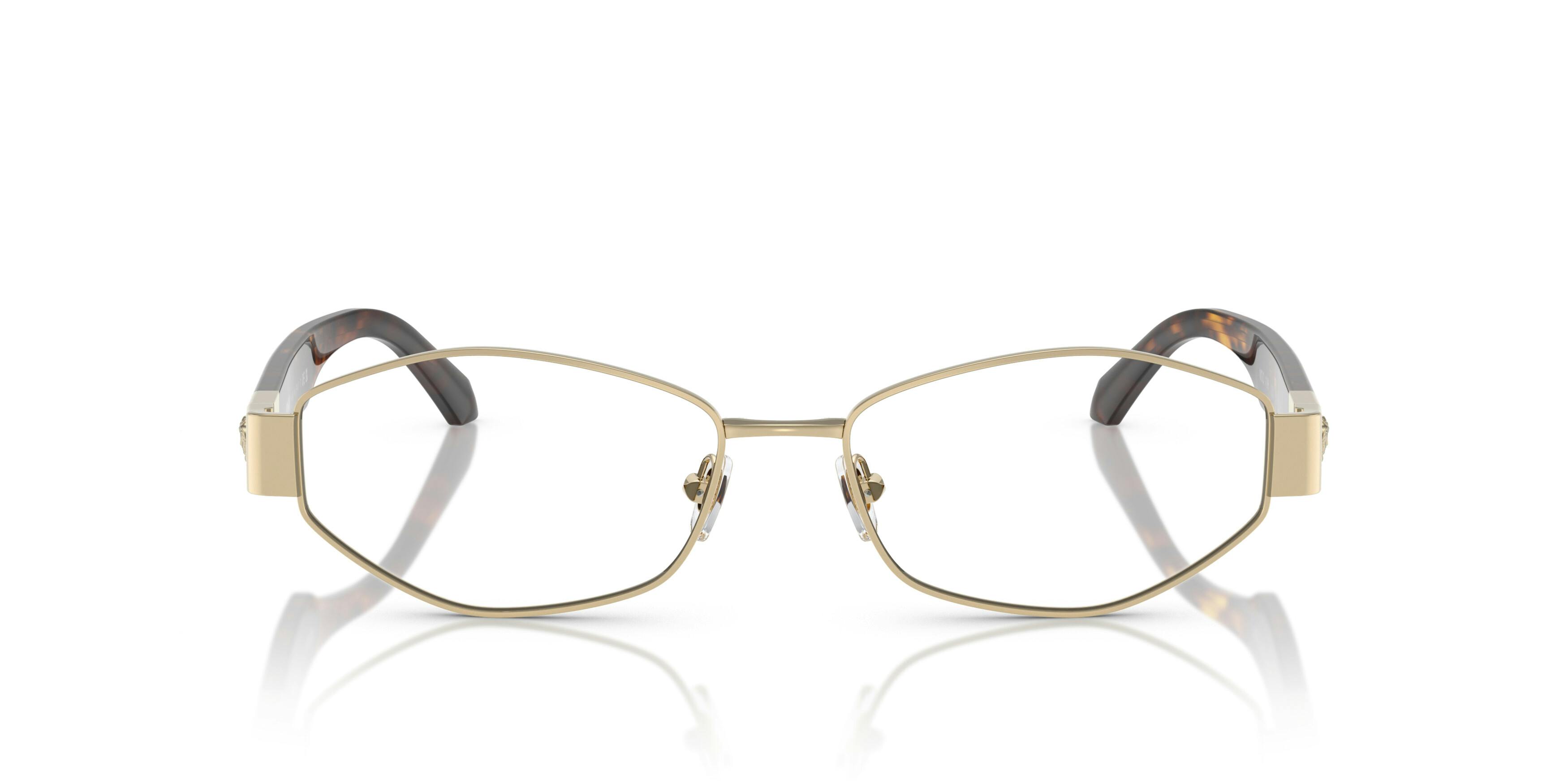 Edle Damen Brille von Versace in Goldfarben. Bei den Brillen von Versace treffen Luxus auf Eleganz und Qualität auf zeitgenössischen Stil. Mit einem perfekten Mix aus Klassik und Exzentrik sowie luxeriösen Details und gewagten Designs ist Ihre Brille ein absolutetes Statement-Accessoire - vielseitige Modelle für jeden Geschmack. Nicht unerwähnt soll die markante Brillenform bleiben. Diese setzt einen ganz besonderen Akzent im modischen Sinn und verleiht Ihrem Gesicht das gewisse Etwas. Dabei liegt es ganz an Ihnen, wie Sie das schicke Accessoire kombinieren möchten. Ihnen und Ihrem individuellen modischen Touch steht nichts im Weg. Metall als Material für das Gestell sorgt dafür, dass diese Brille besonders langlebig und robust ist. Die abgerundete Vollrandfassung mit langlebigen Scharnieren wird Sie nicht nur durch den schicken Look, sondern auch durch den hohen Tragekomfort überzeugen können. Bestellen Sie auf Wunsch die Brille auch mit Gleitsichtgläsern, welches Ihnen einen fließenden Übergang zwischen verschiedenen Sehfeldern ermöglicht. Bestellen Sie jetzt Ihre Brille mit der Möglichkeit Gleitsichtgläser zu verwenden online oder besuchen Sie uns in einer Filiale Ihrer Wahl. Diese edle Brille kaufen Sie bei uns risikofrei zum besten Preis.