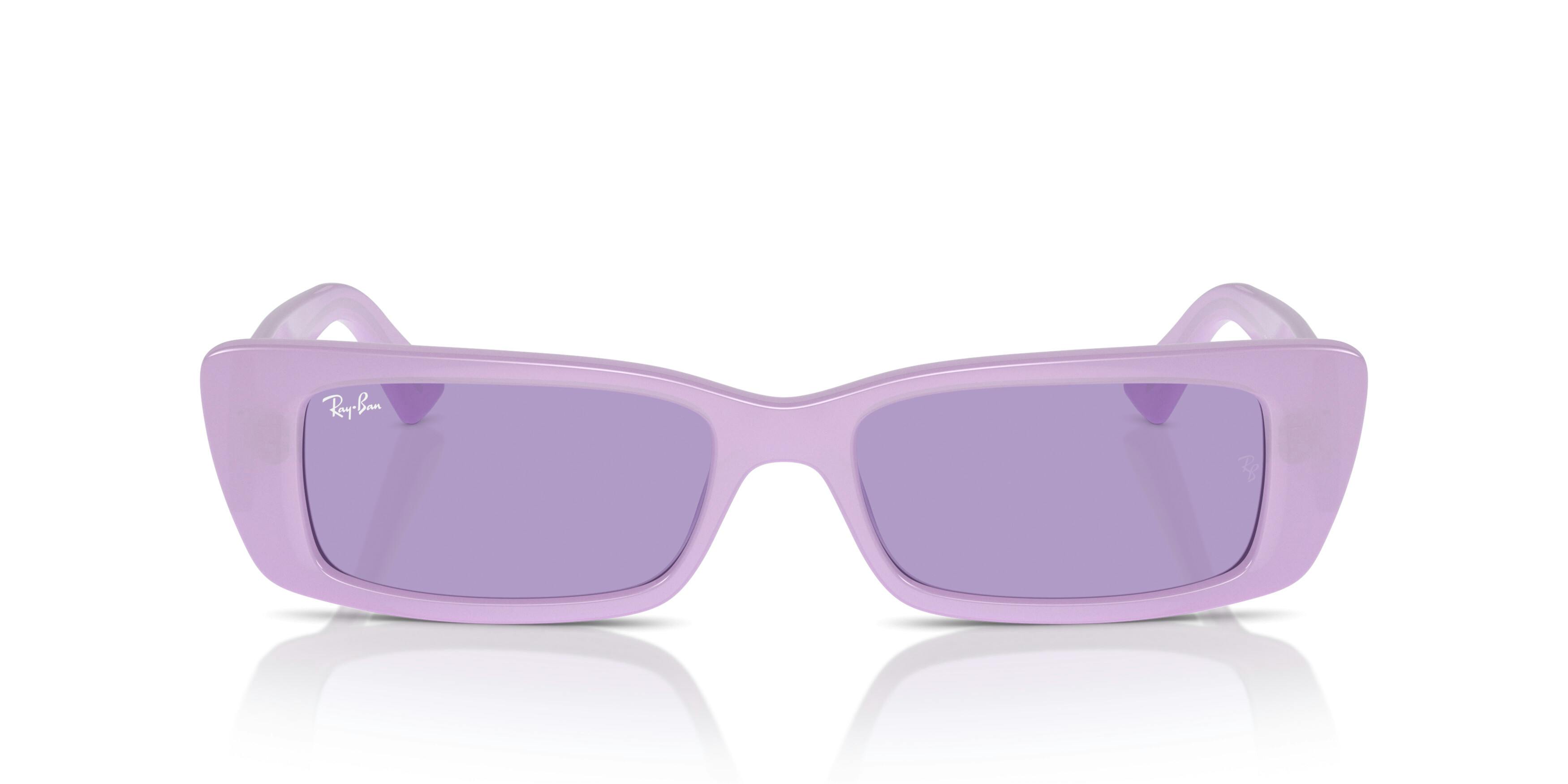 Edle Unisex Sonnenbrille Ray-Ban in Lila - passend zu Ihrem Outfit. Ray-Ban-Sonnenbrille sind mit ihrer langjährigen Tradition eine der Brillenmarken. Immer am Puls der Zeit, modern und mit coolen Styles sind die Ray-Ban-Modelle auch heutzutage beliebt wie nie zuvor. Erkennbar durch den unverwechselbaren Ray-Ban-Schriftzug am Glas und Bügel. Die klassische rechteckige Brillenform, die Ray-Ban uns mit dieser Brille liefert, ist absolut zeitlos. Diese vertikale Umrandung der Augen unterstreicht dabei vor allem runde Gesichtsformen und lässt dabei das Gesicht etwas schmaler wirken. Da die Sonnenbrille aus Kunststoff gefertigt ist, kann sie gut an Ihre Kopfform angepasst werden, was zu einem hohen Tragekomfort beiträgt. Ein weiterer Vorteil von Kunststoff-Fassungen ist die leichte hautverträglichkeit sowie gute Beständigkeit gegen Schweiß und Feuchtigkeit. Bestellen Sie auf Wunsch die Brille auch mit Gleitsichtgläsern, welches Ihnen einen fließenden Übergang zwischen verschiedenen Sehfeldern ermöglicht.Eine Sonnenbrille erfüllt dabei eine wichtige Funktion: Sie dient dem Auge als zusätzlicher Blendschutz. Bestellen Sie jetzt Ihre Sonnenbrille mit der Möglichkeit Gleitsichtgläser zu verwenden online oder besuchen Sie uns in einer Filiale Ihrer Wahl. Diese edle Sonnenbrille kaufen Sie bei uns risikofrei zum besten Preis.